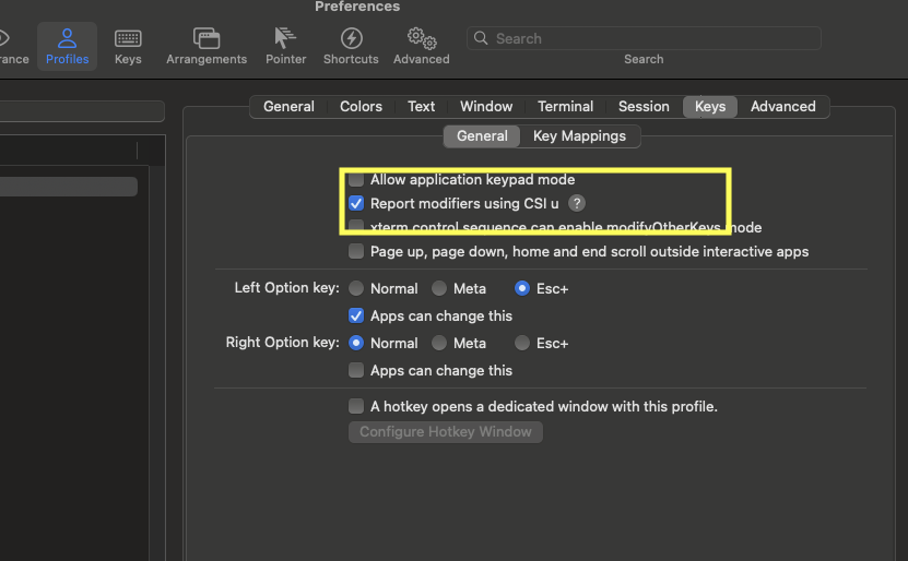 Send Escape Sequence를 선택하고 위에서 복사한 [13;5u를 입력해주면 된다.